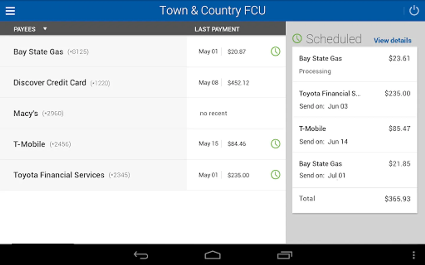 With the Town & Country Mobile Banking app, you can access your accounts anytime, anywhere from your mobile device or Wear OS. Check your available balances, view transaction history, transfer funds between accounts, deposit checks and find the nearest branch or ATM. Your finances, on the go with Town & Country Mobile Banking.
