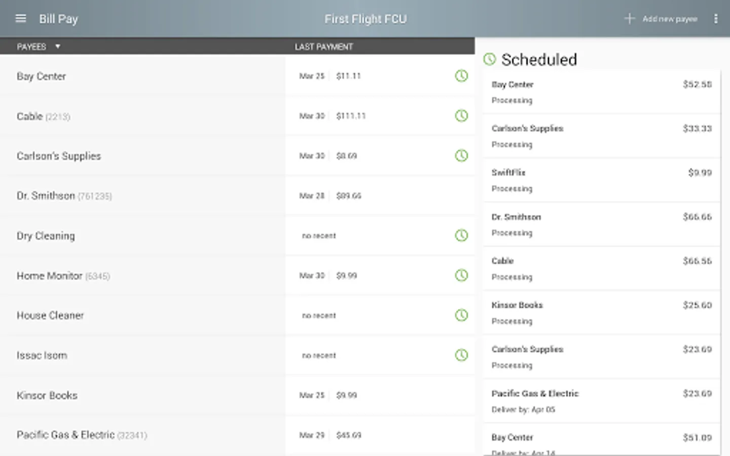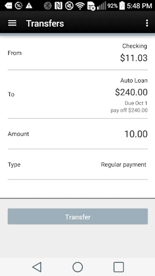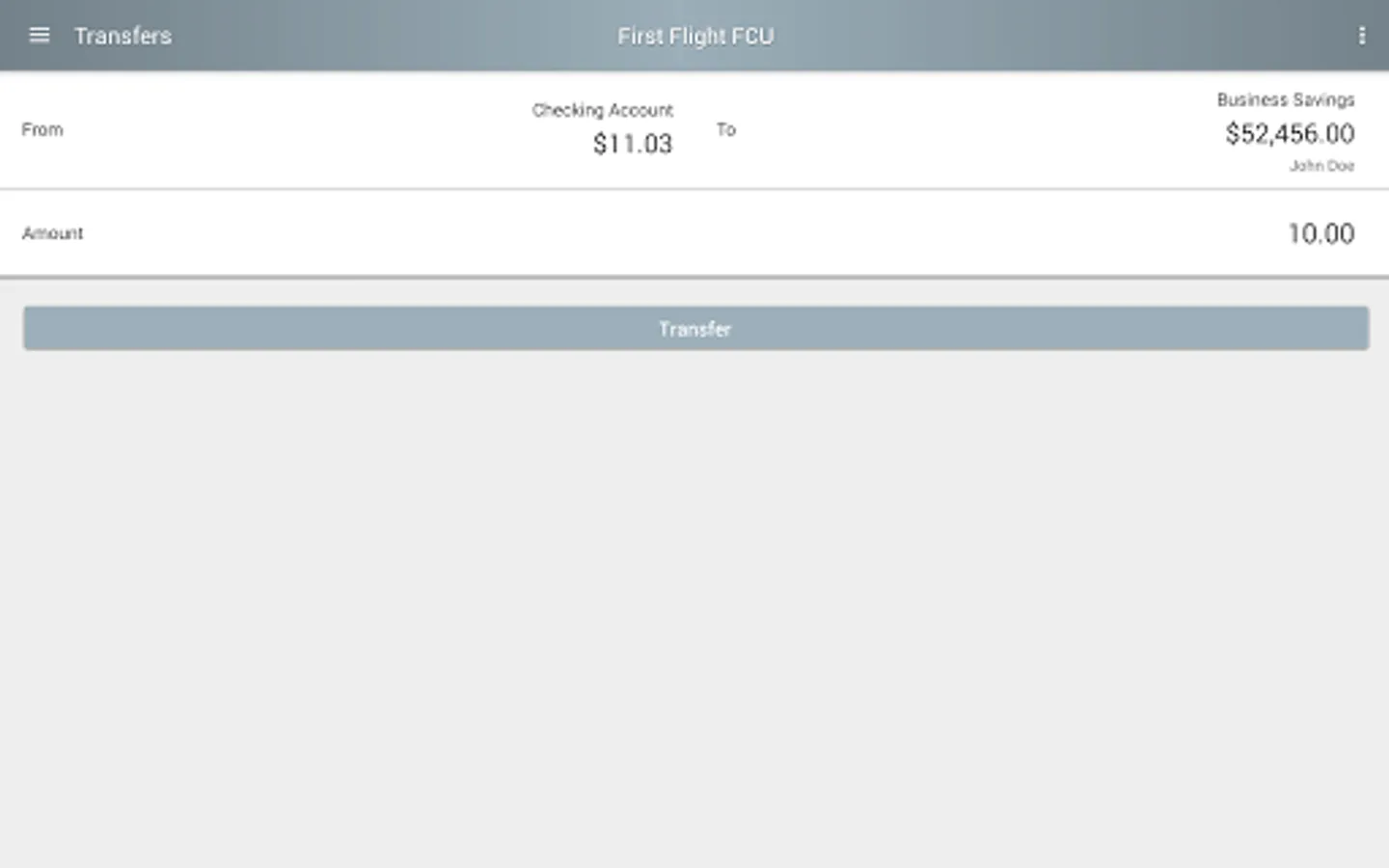 Transfer money, Pay Bills, View and activate your cash back offers, review balances, deposit a check, or find the closest ATM/financial center with a simple touch of a button.