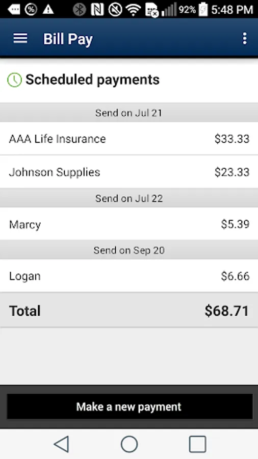 • Pay bills using Mobile Bill Pay