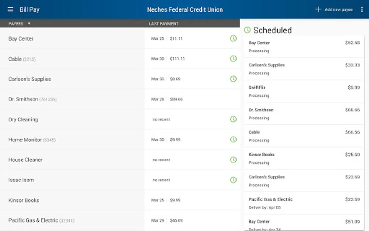 Neches FCU mobile banking app allows you to check balances, search for ATMs, view transaction history, transfer funds, pay bills, view and activate your cash back offers, and pay loans on the go. Wear OS also available.