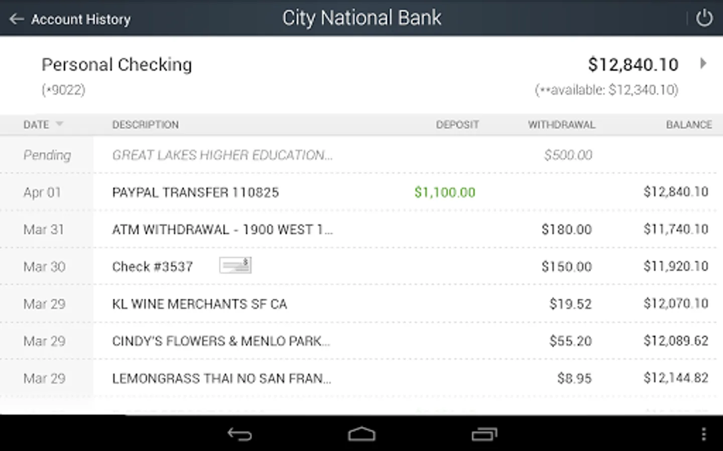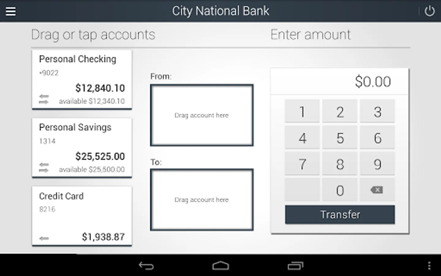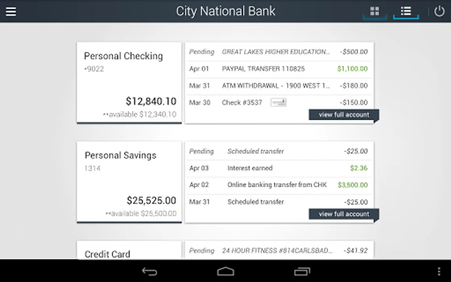 With the City National Bank of Florida (CNB) mobile app and Wear OS, you can check your balance, view account activity, pay your bills, transfer money between accounts and find the nearest CNB location or ATM with just a few taps.