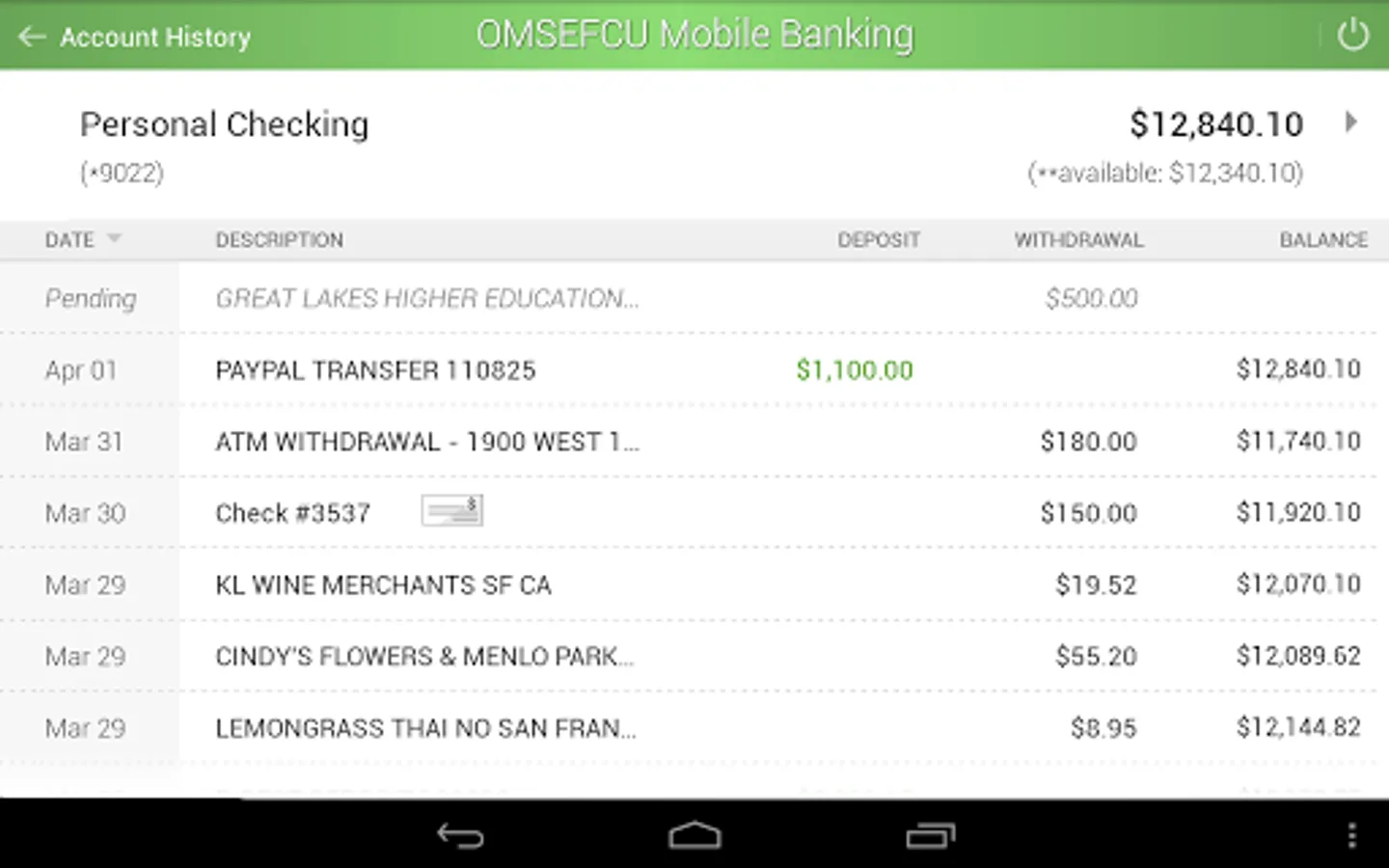 With the OMSEFCU Mobile Banking app. you can check your available balances, view transaction history, transfer funds between accounts, pay your bills, contact your Credit Union, and find thousands of surcharge free ATM locations.