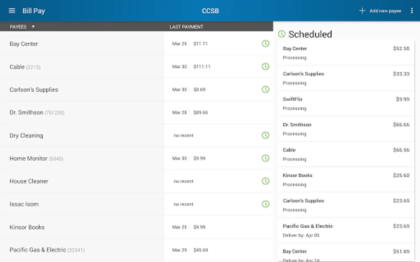 • Pay bills and credit cards