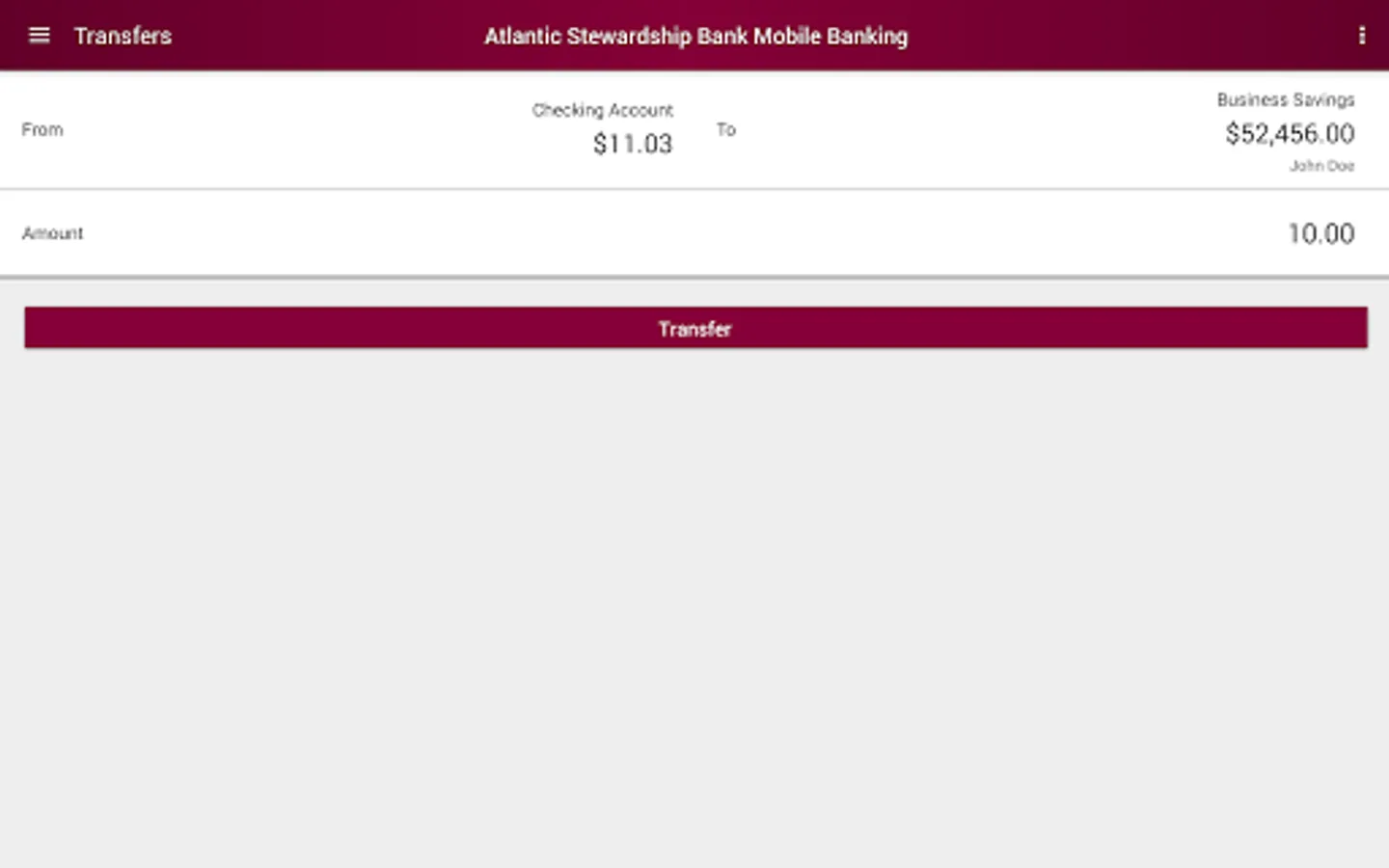 With the Atlantic Stewardship Bank Mobile Banking application you can check your available balances, view transaction history, transfer funds between accounts, pay bills, view and activate your cash back offers, contact ASB, find an ATM or branch in your area.
