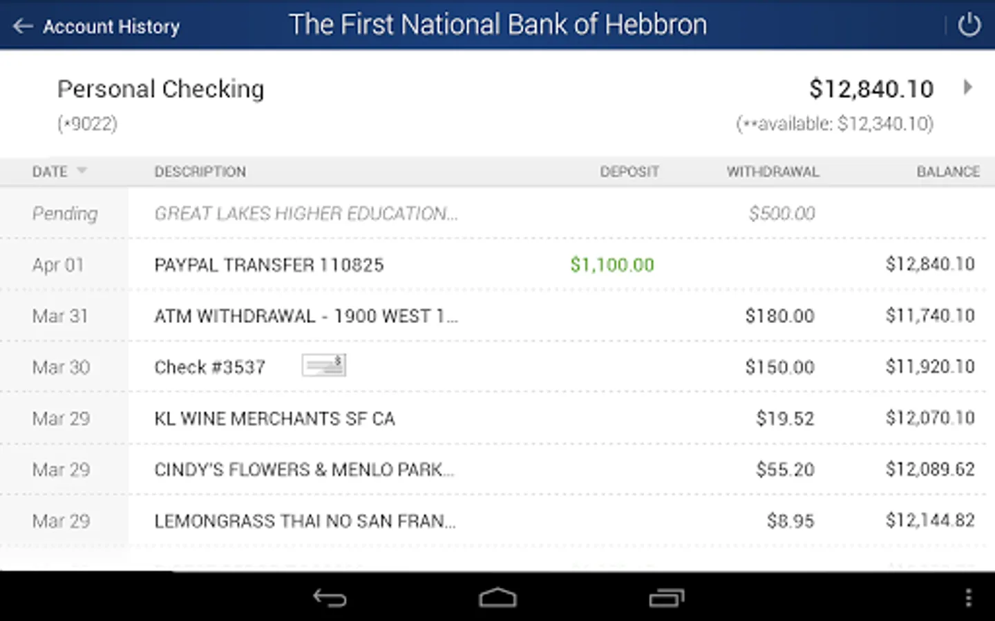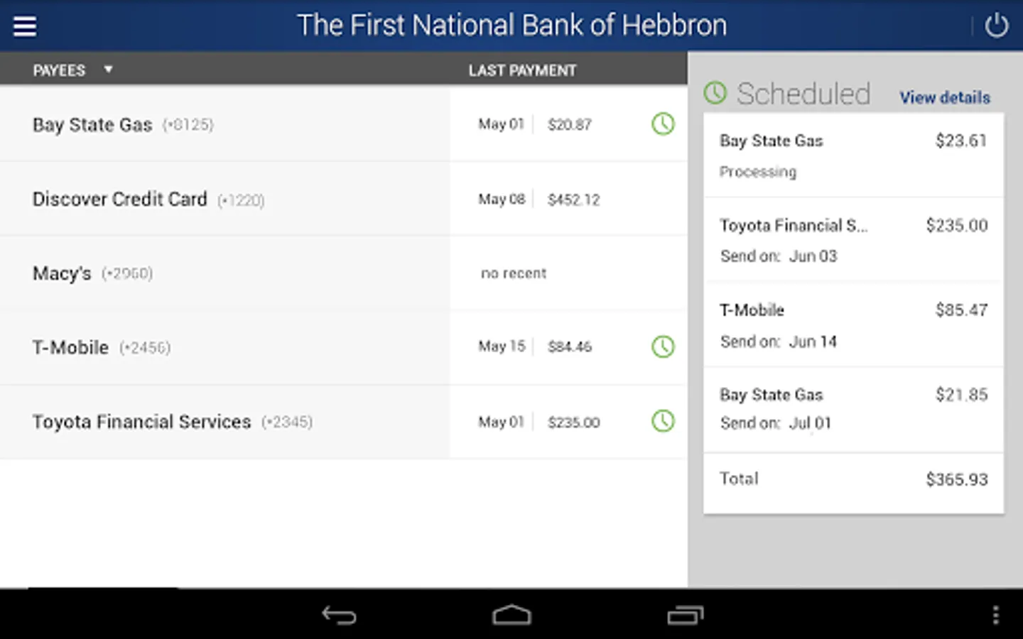 FEATURES OF FIRST NAITONAL BANK OF HEBBRONVILLE'S MOBILE BANKING