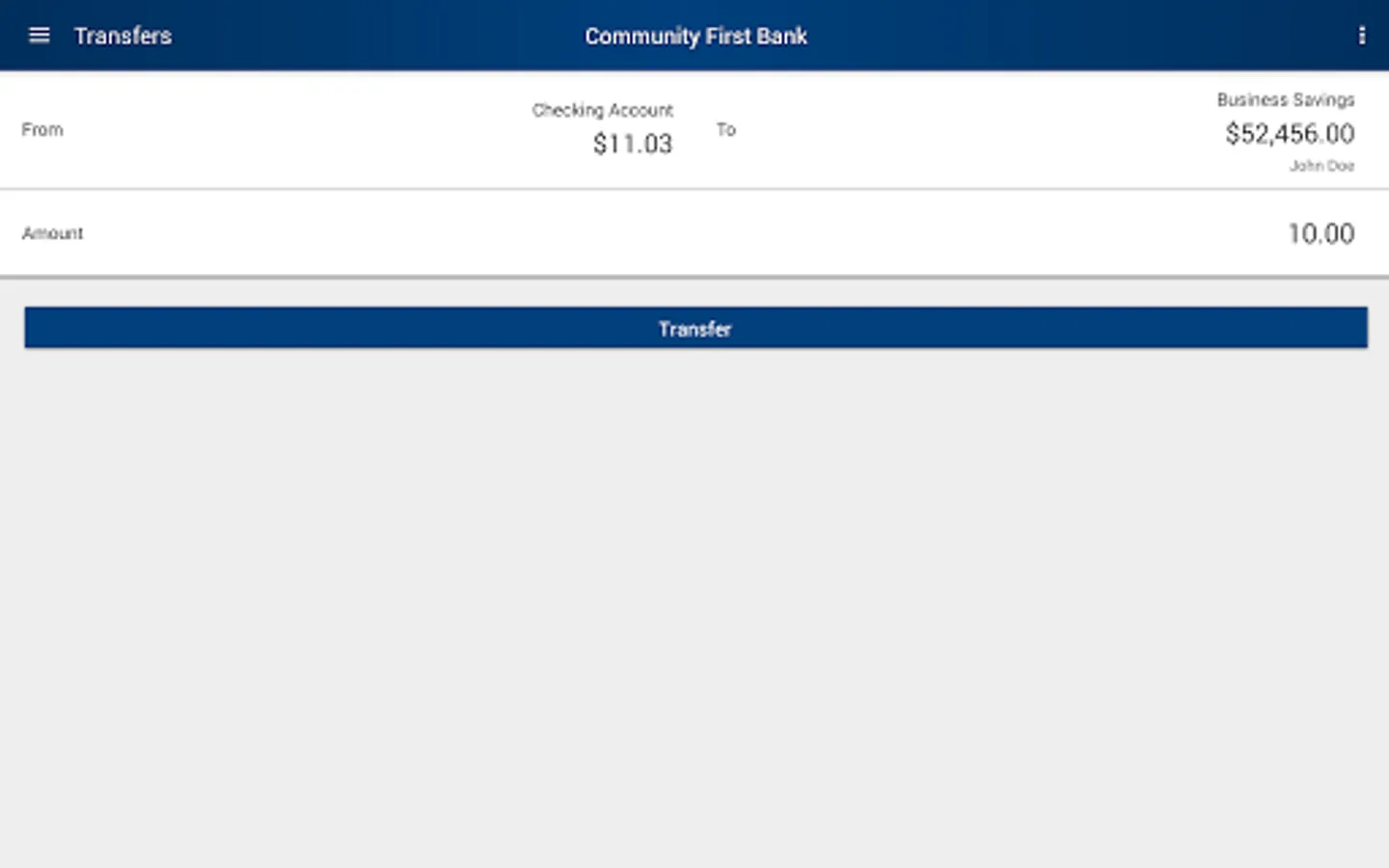 Mobile banking* is a free service to customers of Community First Bank. Mobile banking allows you to complete financial transactions from the convenience of your mobile device: check balances, transfer funds, pay bills, review checks, and locate ATMs, or contact us. Our mobile banking app provides the ease needed to manage your finances from wherever life takes you.