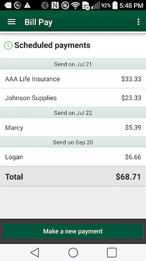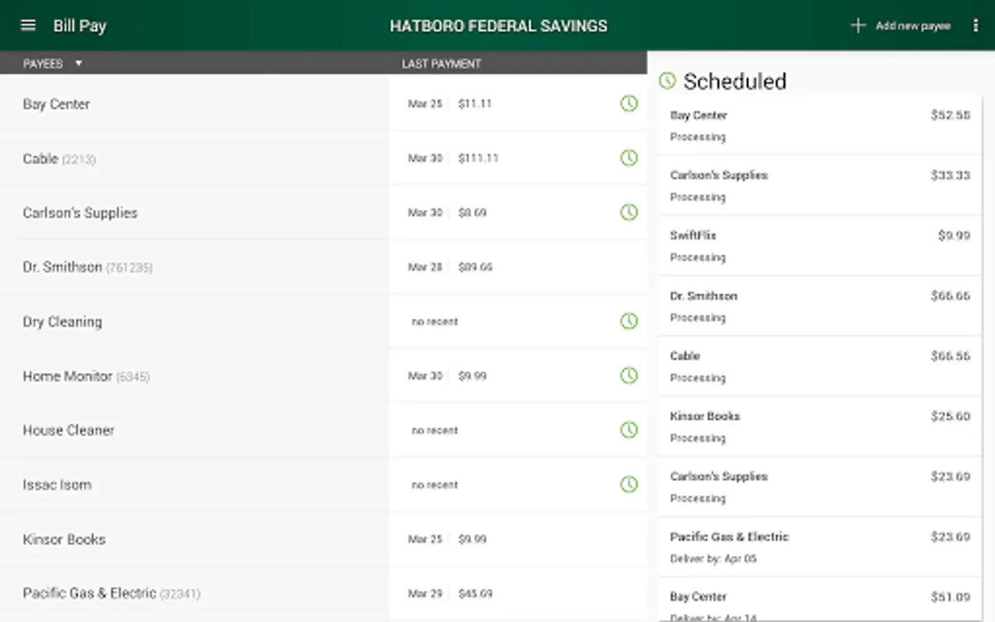 • View and delete scheduled payments, as well as set up one-time payments to existing billers