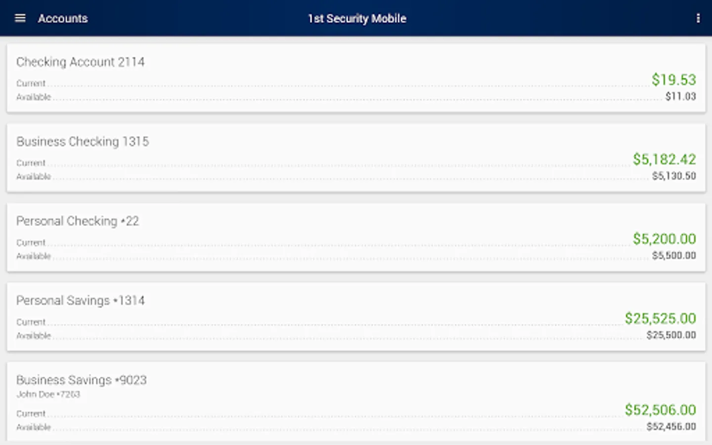 - Must have online banking service and password to access account information via 1st Security Bank of WA Mobile app.