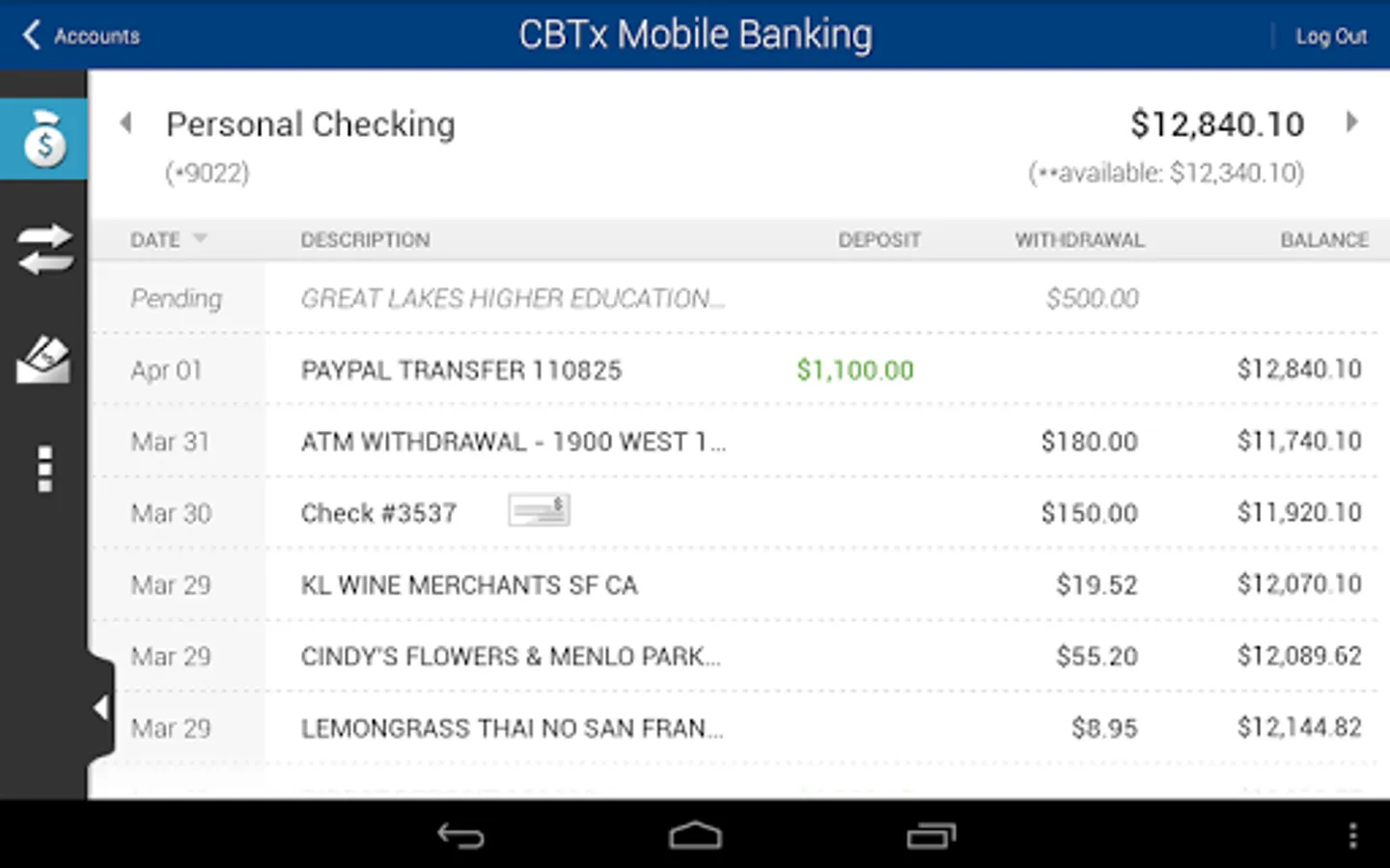 With CBTx Mobile Banking, you can easily take your banking with you*. Make deposits, check your balances, pay bills, transfer money, view and activate your cash back offers, and locate ATMs and CBTx banking centers. CBTx’s Mobile Banking app is fast, easy to use, and secure!