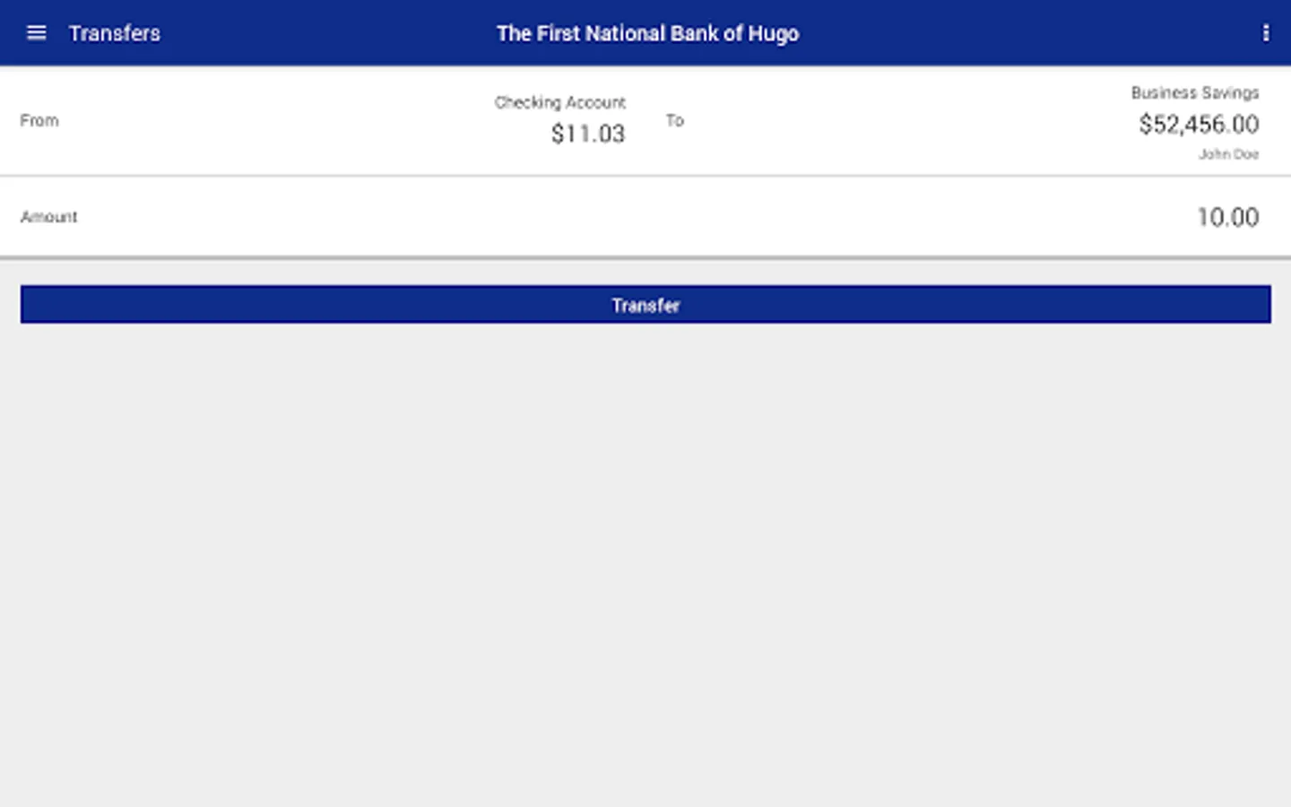 • Transfer money between The First National Bank of Hugo accounts
