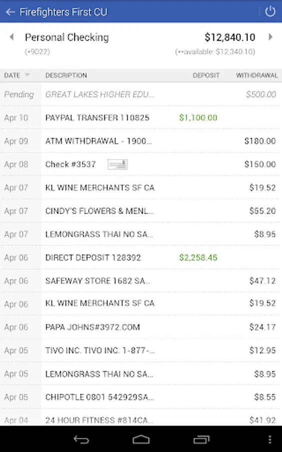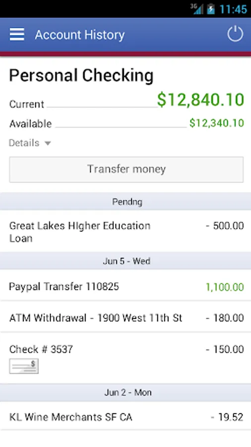 - Check your latest account balance and search recent transactions by date, amount, or check number.