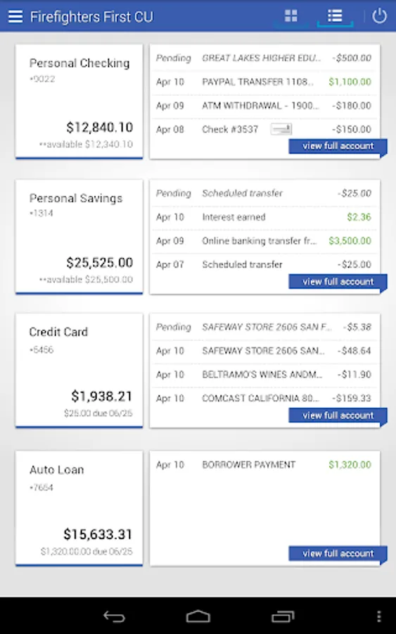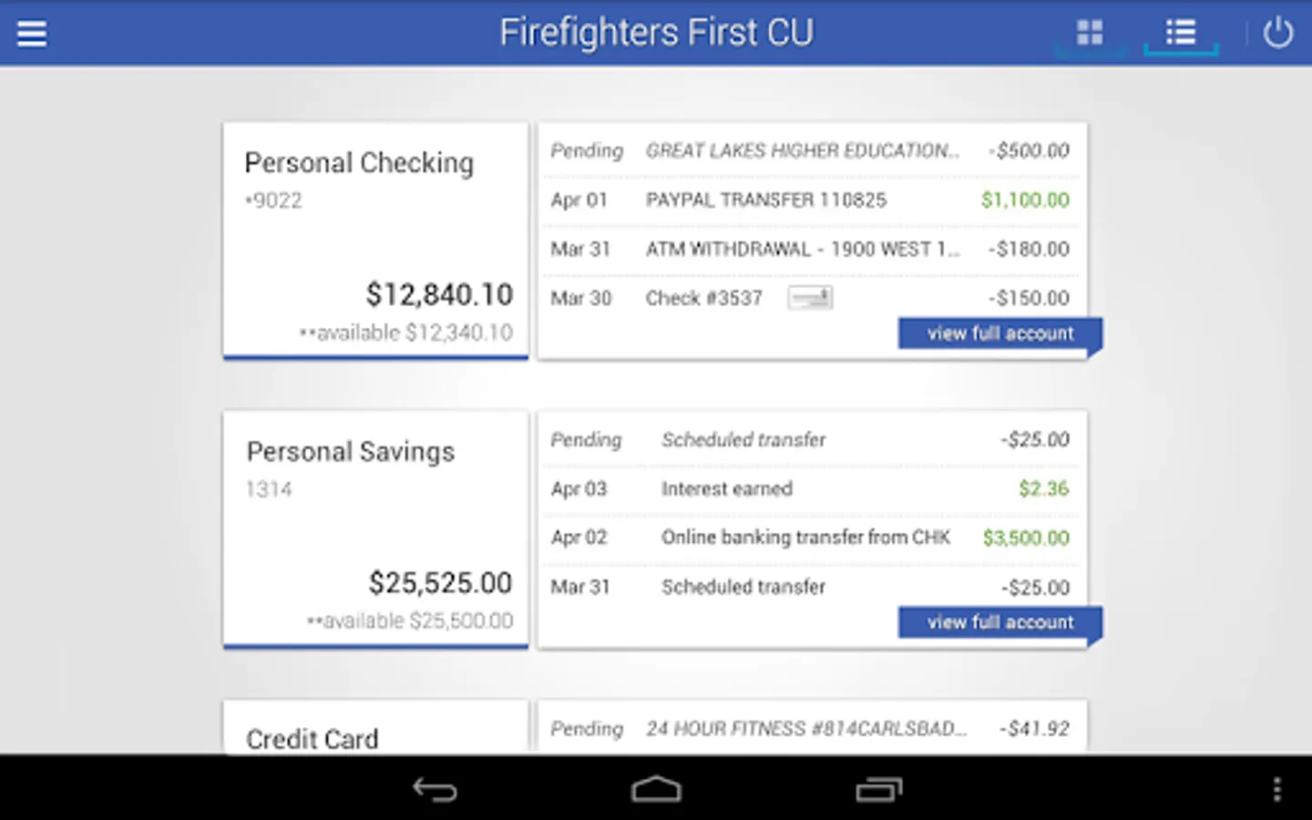 With the Firefighters First CU Mobile Banking app, you can easily check balances, view account activity, make deposits, pay bills, transfer funds, and more – wherever you use your Android phone or tablet – at the fire station, at the check-out counter, or when you’re away from home. The Firefighters First CU Mobile Banking app is convenient, fast, and free.