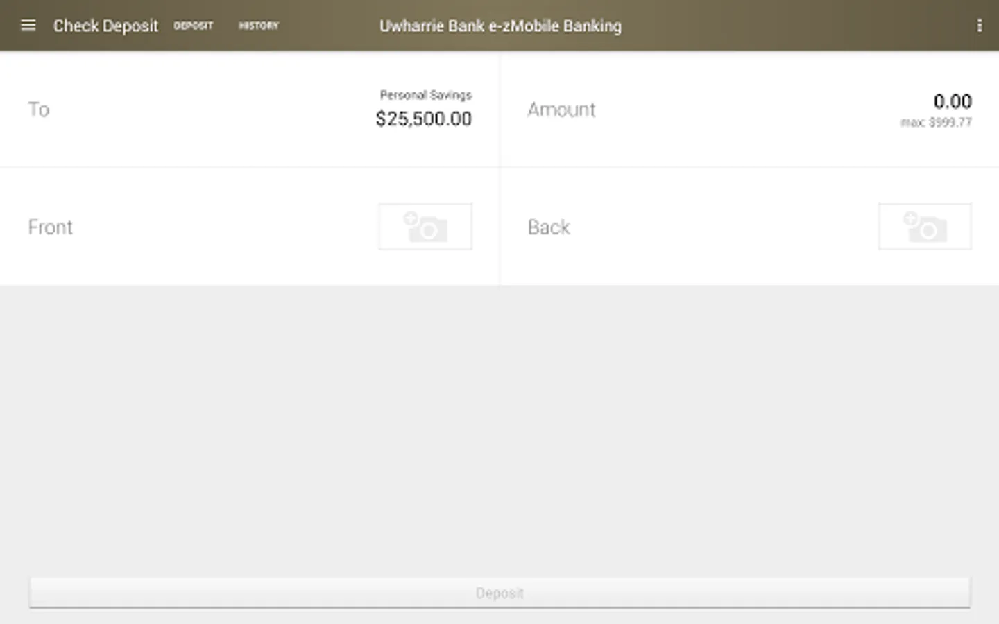 Take your bank wherever life takes you. With Uwharrie Bank e-zMobile Banking app you can check your available balances, view transaction history, transfer funds between accounts, locate your local branch and ATM, pay bills, and deposit checks.