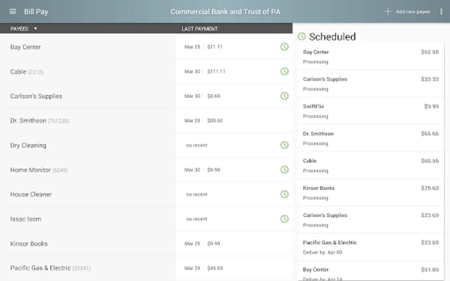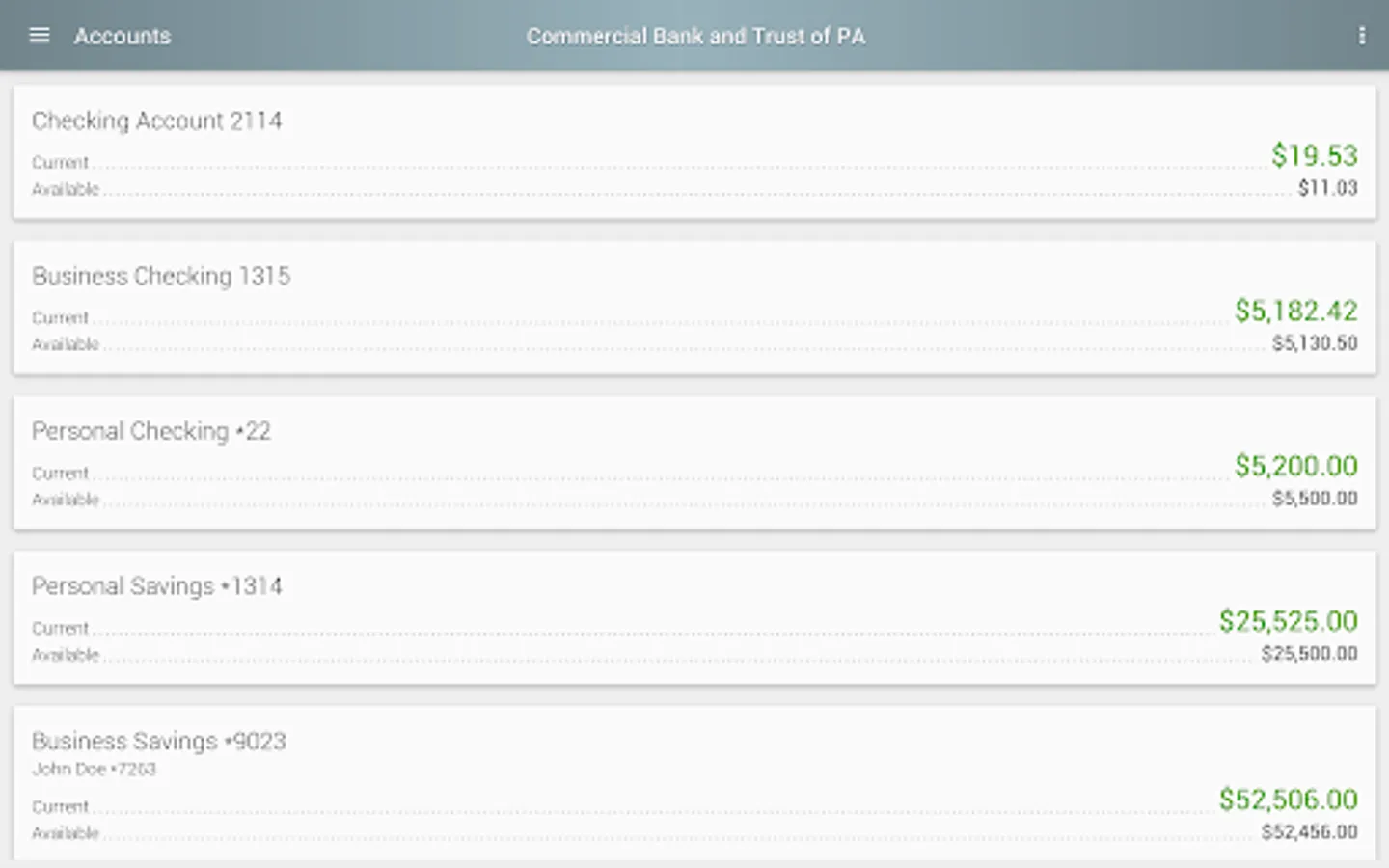 FEATURES OF COMMERCIAL BANK AND TRUST OF PA MOBILE BANKING