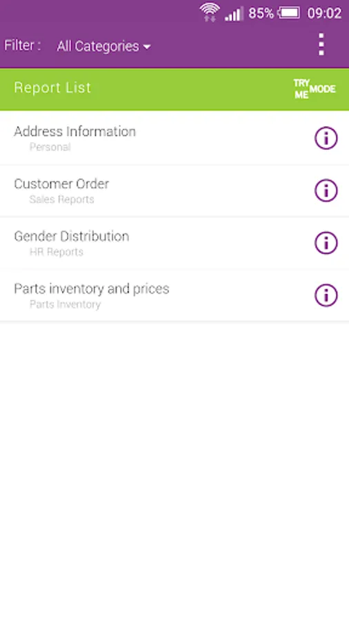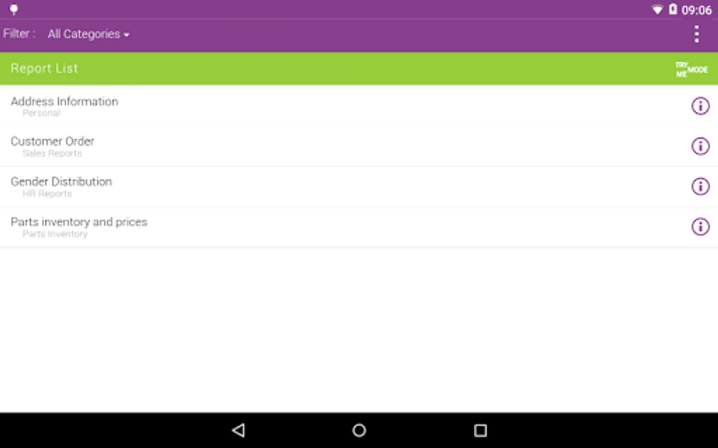 IFS Quick Reports can be used in Try Me mode with demo data without requiring a log on or network connection.