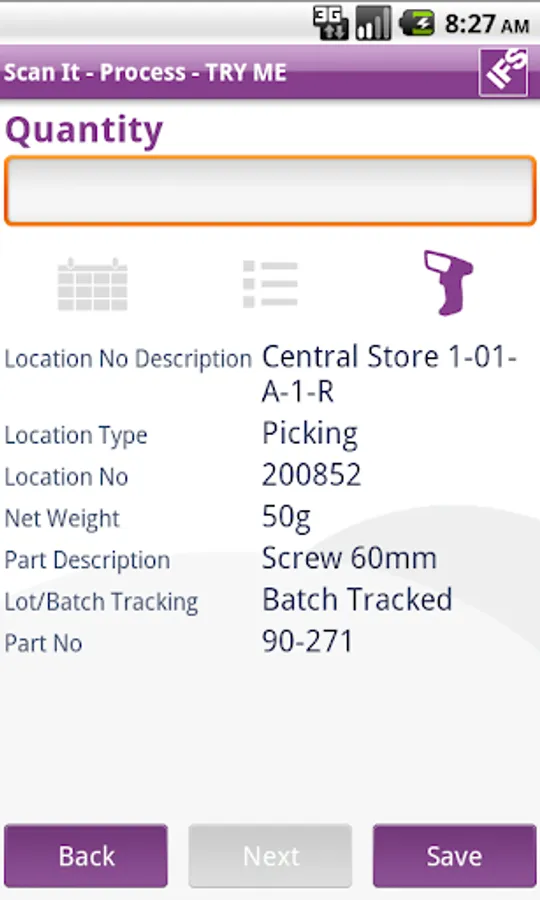IFS Scan It comes with an easy-to-understand user interface consisting of a process menu to get you started, followed by a customer configured process flow which for each step tells you what to capture by scanning a barcode, manual entry or reading an NFC tag if your device supports it.