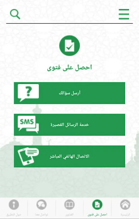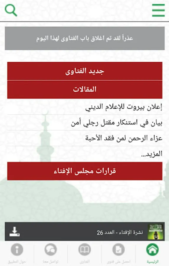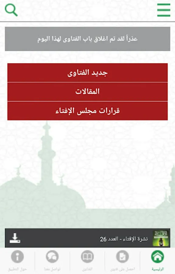 The application offers you Fatawa Islamic moderation, reinforced by evidence and documentation, it issued a religious research institution accredited by, and offers key services, such as Send your question service, direct dialing Bmksm circuit.