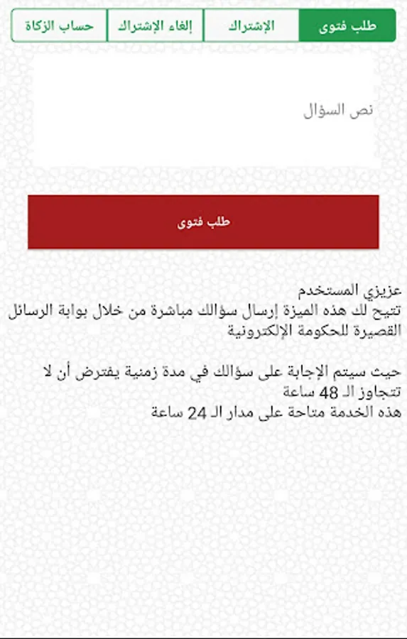 It also provided search service in Fatawa published archive is complete, and you can follow through his window again what comes out of the Jordanian Fatwa Council resolutions and new articles, and the provision of SMS services provided via the SMS Gateway for e-government of Jordan.