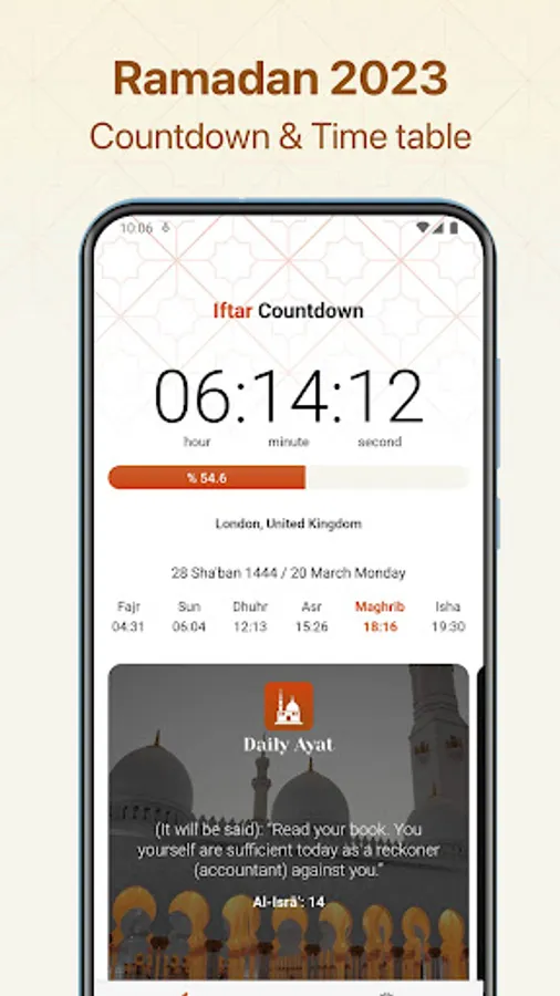 Discover the ultimate Ramadan companion with Iftar Countdown, your go-to app for Iftar and Suhoor times, prayer timings, and engaging content during Ramadan.