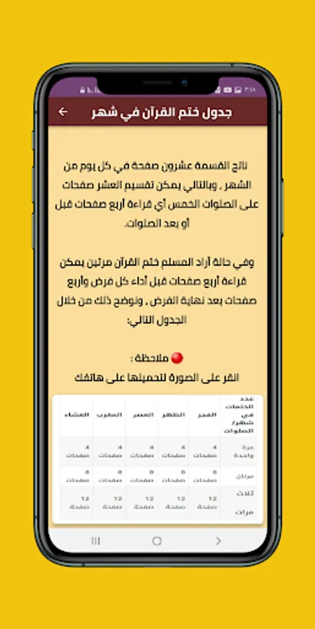 It contains a set of tables for the times of reading the Noble Qur’an in the blessed month of Ramadan