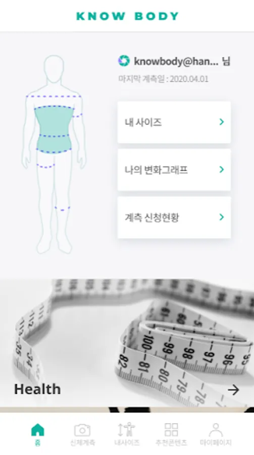 ‘KNOWBODY’ automatically measures about 100 body dimensions with only a smartphone regardless of location and time, and aims for an accuracy of over 95%. Through the measured dimensions, my body shape change history management and body shape change graph are provided. In addition, we provide personalized health content, styling content, and correction content tailored to your body type. Nobody has more than 1000 contents to provide personalized service, and is constantly researching and developing contents.