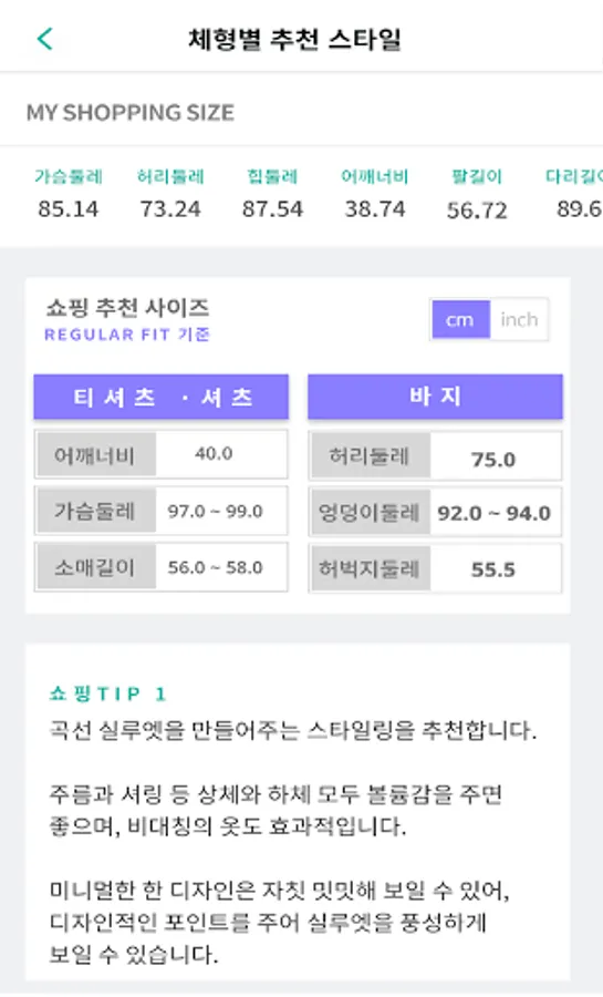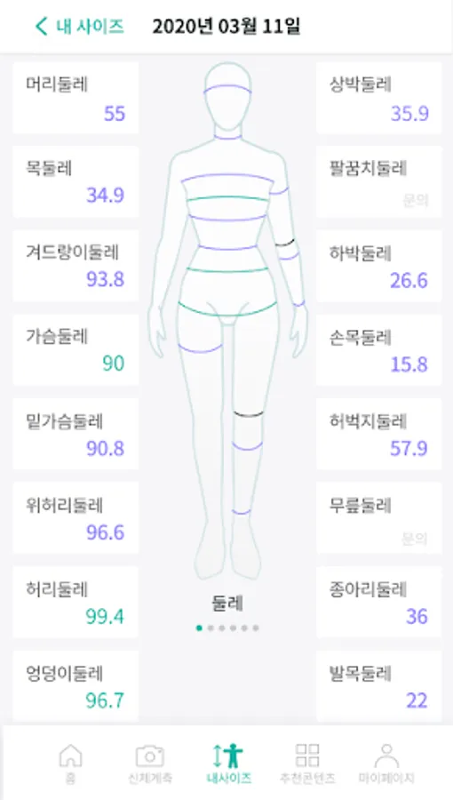 - Recommended exercise by body type: You can check the analyzed body type through the requested dimensions.
