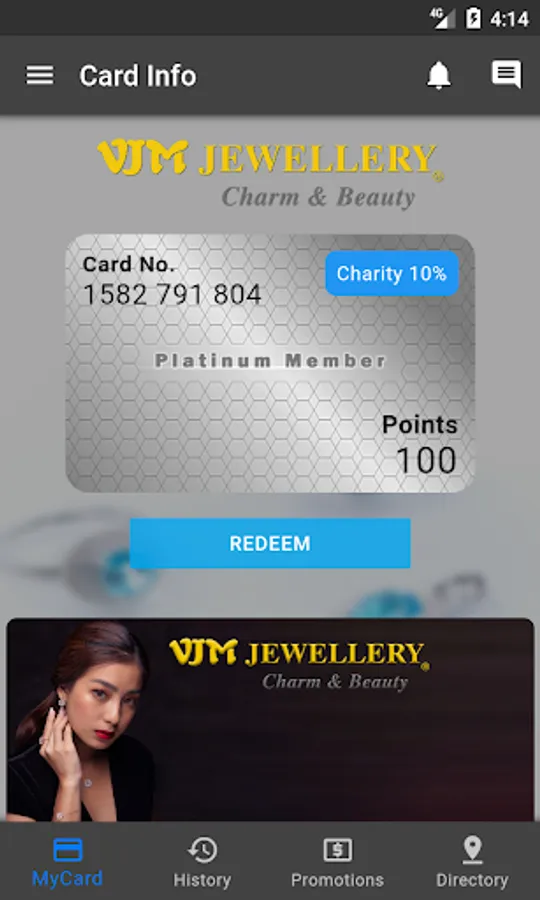 VJM Card is a customer loyalty program offered by Victory Jewellery Management Co., Ltd. Any customer can simply participate in the program by installing this App into their mobile devices. An internet connection via wi-fi or mobile data and a phone SIM card is required to use VJM Card. After account registration, the system will provide a unique card number to the user. The user with card number can collect points by making purchase at any VJM POS.