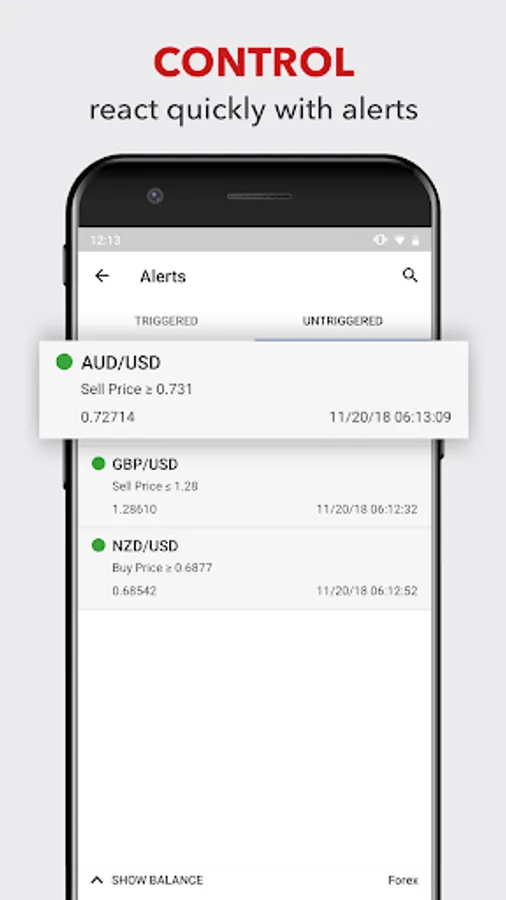 • Set price alerts and react immediately to trading opportunities