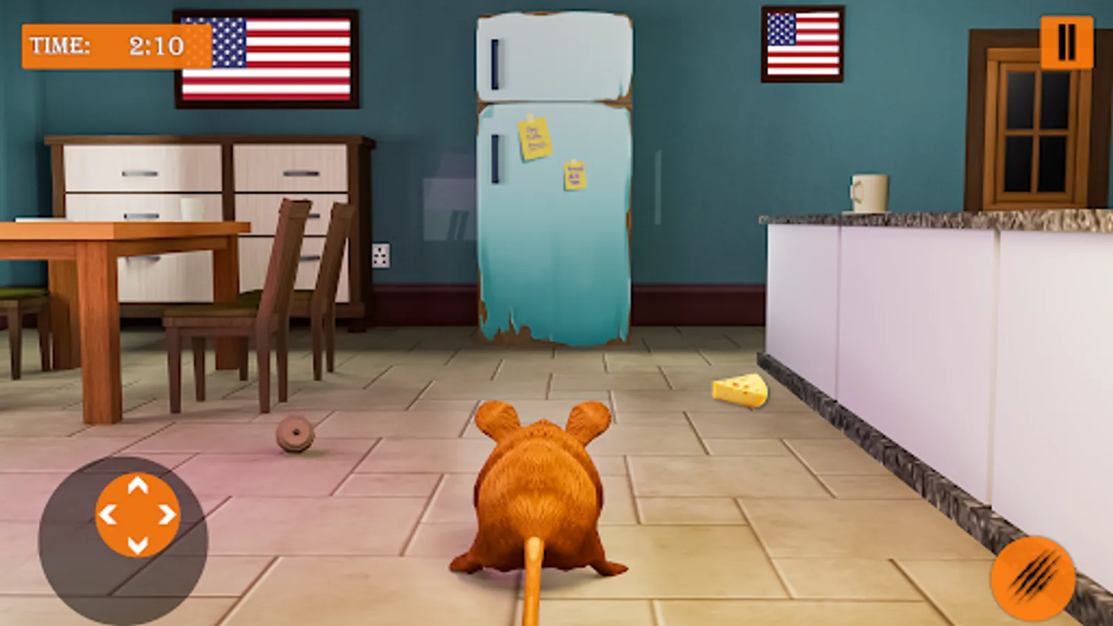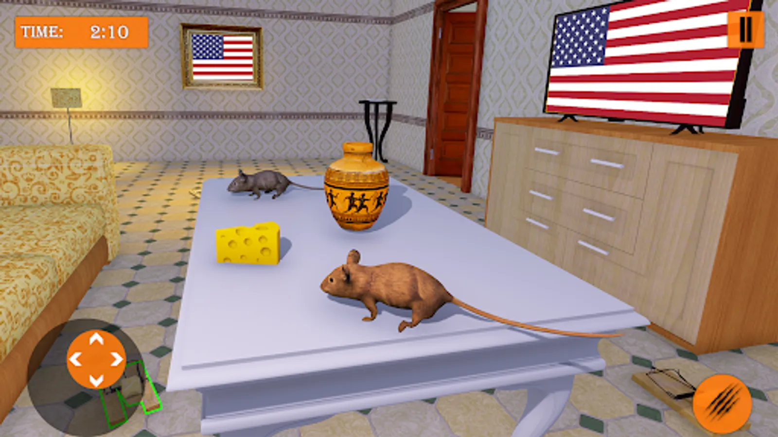 Two locations: A huge Forest and a Cottage in a Rat Trap. Live in your secluded Mousehole in the Forest or Rat trap Game. In the cottage, the king Mouse Simulator will have to show all your agility, Climb the fabric Animal Simulator Games surface and jump from shelf to shelf, from furniture to furniture, on the way to the necessary object in the Mouse Simulator Games. Control the Crazy Cat Mouse running Game in all its fury and help Crazy Cat Mouse Simulator stay alive. There are many Wild Animals in the Spy Mouse Games, so beware of them.