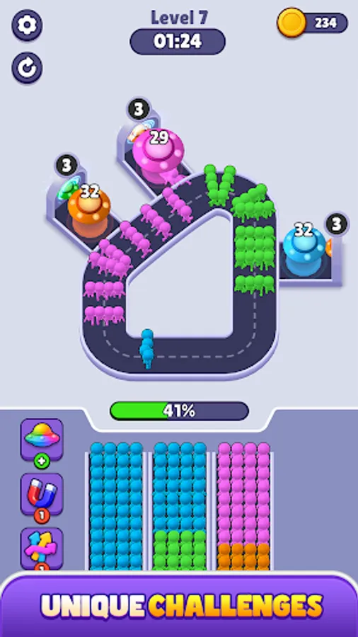 Join the people jam, enjoy the color jam puzzle flow, and experience the ultimate puzzle flow adventure! Can you solve every level before the people jam fills up?