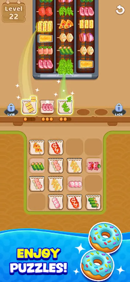 🍢 Smooth and satisfying food sort gameplay, easy to pick up yet impossible to put down.