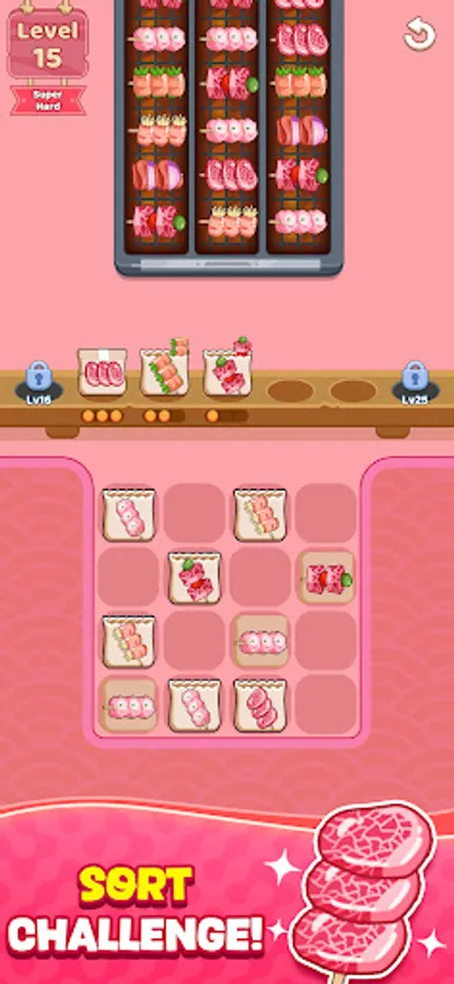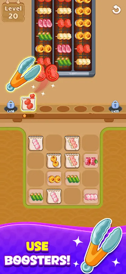 🥩 Unlock rewards and powerful tools as you level up in bbq sorting games, helping you clear the conveyor faster.