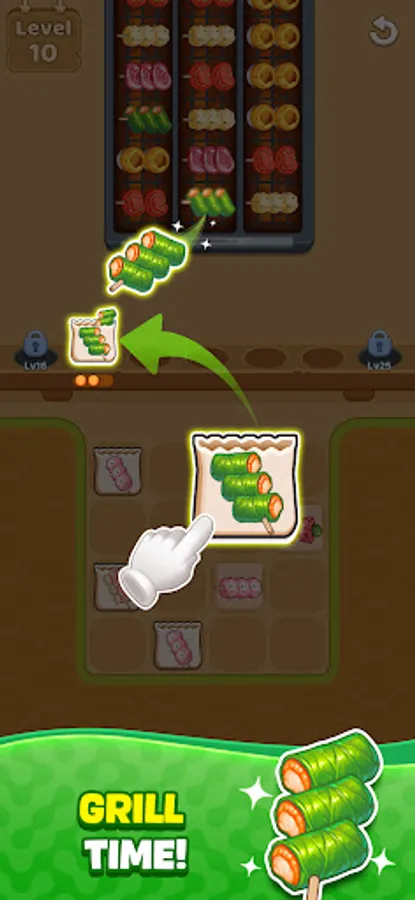 Step into the sizzling challenge of food games! In Grill Time, skewers slide across the conveyor belt, and your job is to guide them into the right box below. Select the matching box and drop each delicious skewer into its correct spot - a fun and fast-paced bbq sorting game test of precision. Clear the belt, organize every order, and master the art of bbq food game in this flavorful foodie puzzles adventure!