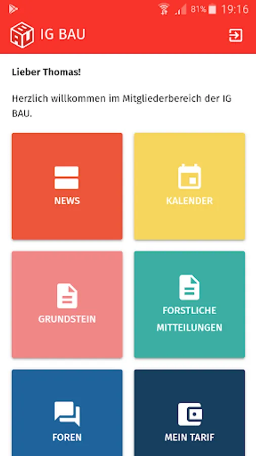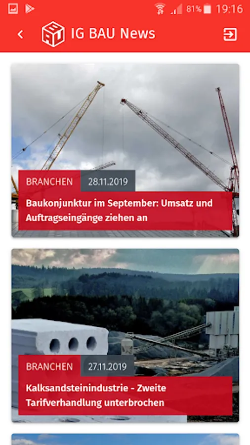 The members app of the industrial union Bauen-Agrar-Umwelt allows comfortable access to a wide range of information.