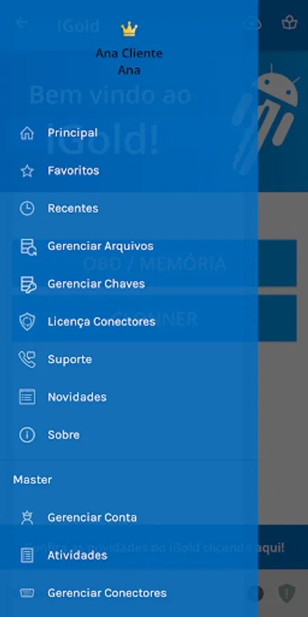 All its operations (diagnostics, clonner and memory) are performed in the application that connects via Bluetooth to iGold kit hardware.