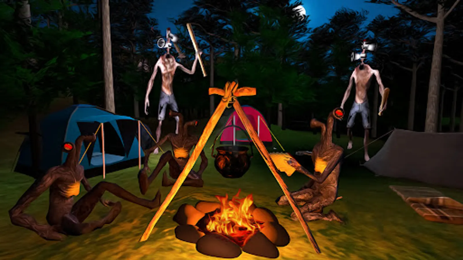 This is a Horror Escape Siren Head and Light Head Game. You and your friend find yourself stranded in a Scary Haunted Area when your car breaks down, so you go inside the Scary Haunted House Escape after finding a key. The Scary Siren Head Game comes and gets you in this Haunted House Adventure Game with Horror Escape. You're in a forest of Ghost Games 3D. Locate your Siren Head Horror Game camp near the bonfire and find a camera there. Now locate the radio tower to find the Scary Light Head and take his photo from a distance to prevent it from getting spotted, as there is a big bounty over his picture. Now you have to get out of the jungle as your friend is disappeared so try to get help from the radio, but the radio is broken in Crazy Pipe Head Game. There is a bow at the tower, find it. As soon as the player gets down from the building and sees the Pipe head Game light, and light head spots the player. Now hit this Light Head with a bow and escape before he catches you. Play scary light head vs siren head game in theme of halloween.