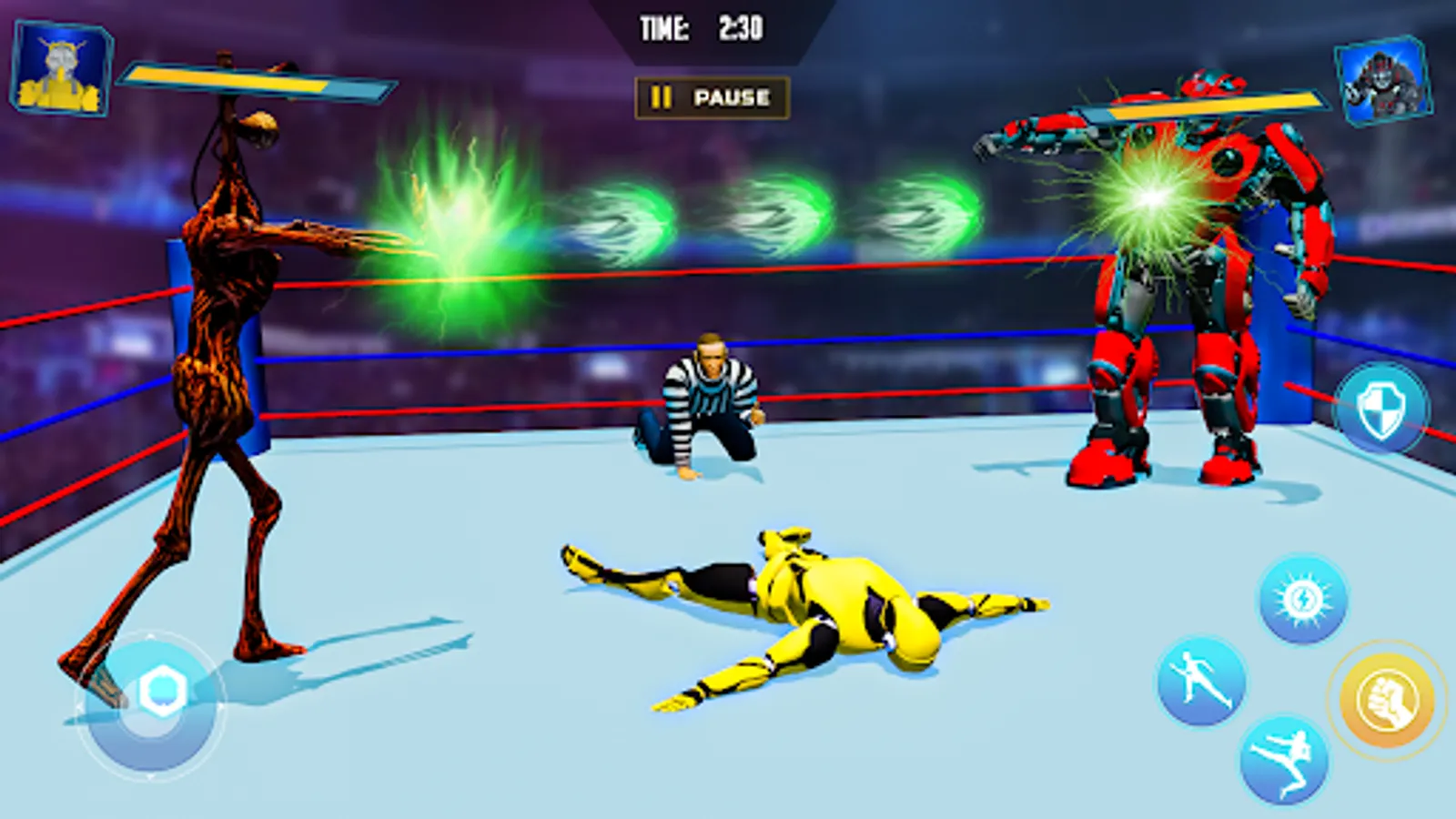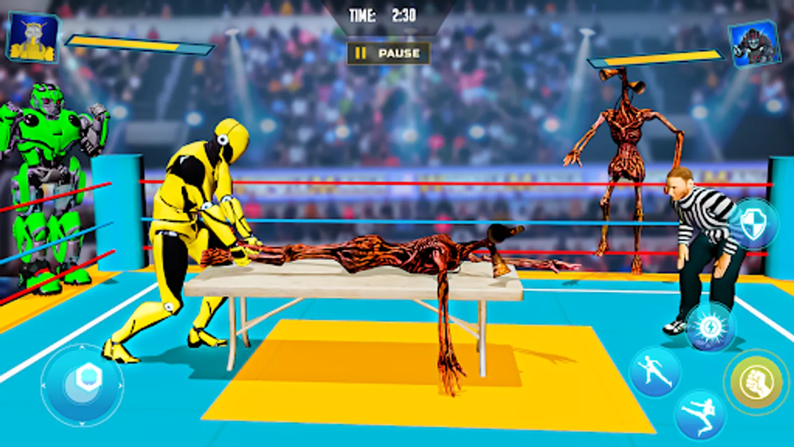 Siren head vs robot fighting game is here to give a unique theme to siren head games. Siren head offline is often taken as scary siren head games but this time, fighting games offline will have a twist. There are many wrestling games 3D and fighting games in town but concept of siren head fighting with futuristic robots games in robot ring fighting is epic. Siren head horror game is no more a scary game. It has evolved from horror scary games genre to battle war games. Battle games 3D with fighting robots game in robot battle arena game is adventurous. Robot games offline has elements of robot fighting games and robot shooting games. Siren head & robot fight is like an ultimate battle of robots and scary creatures.