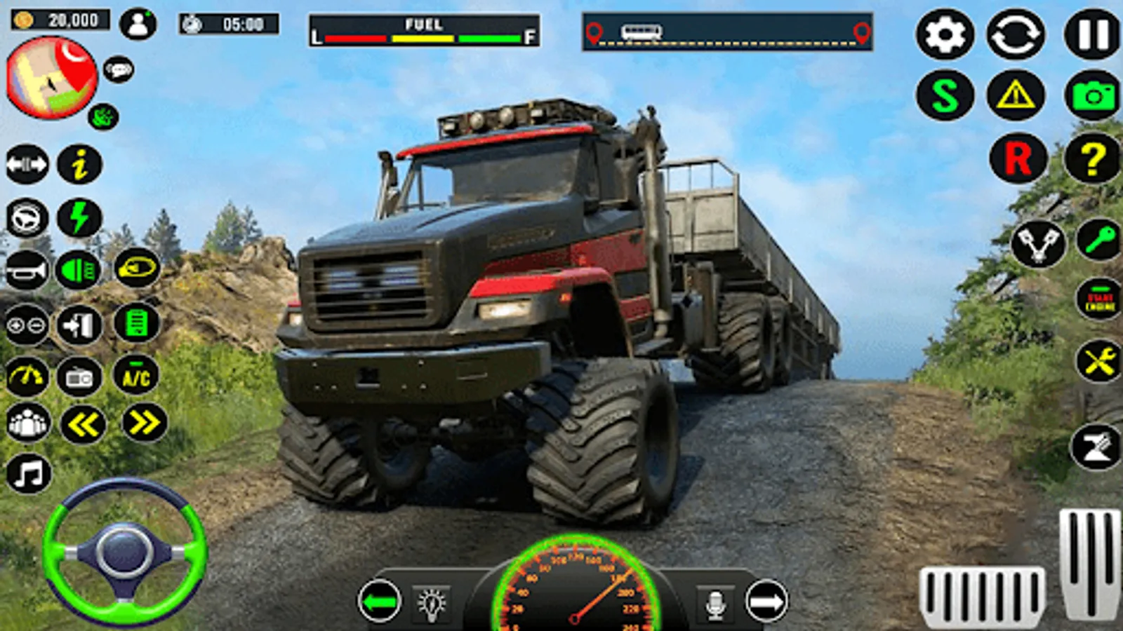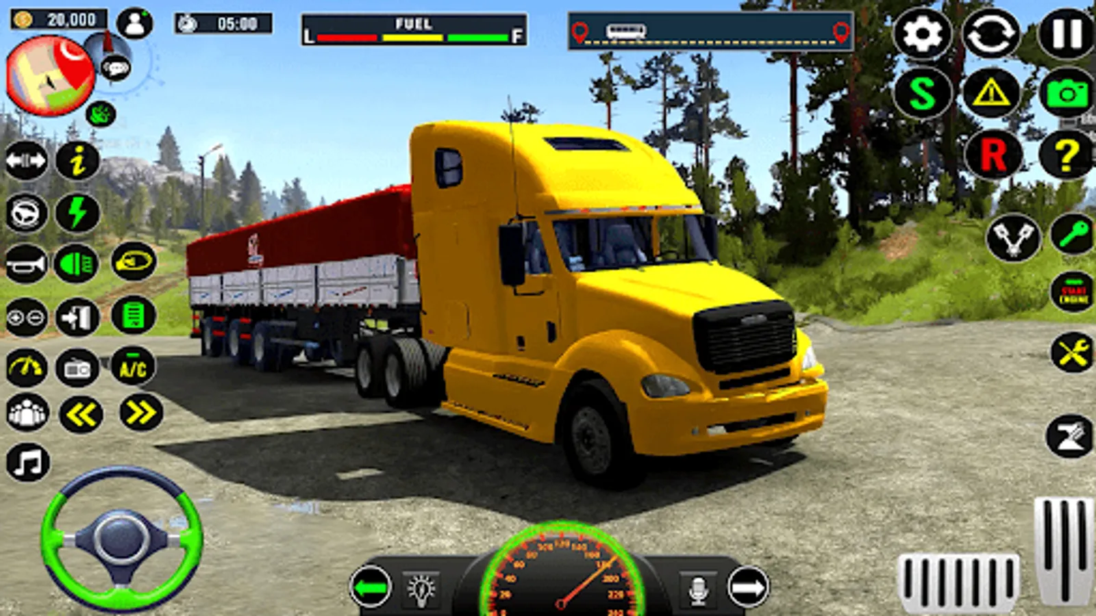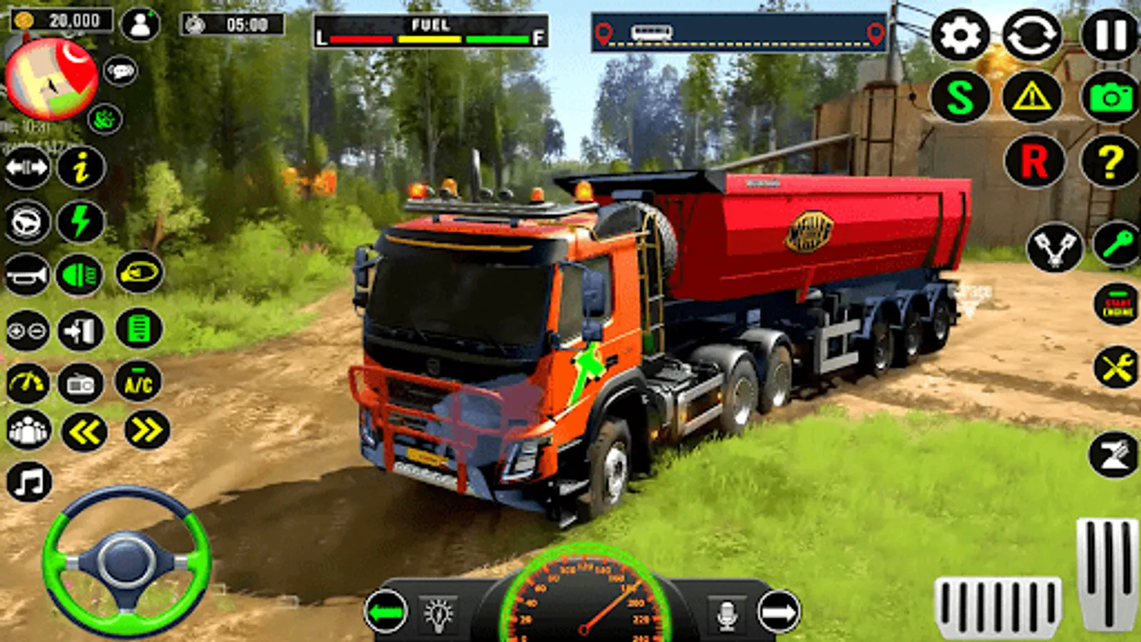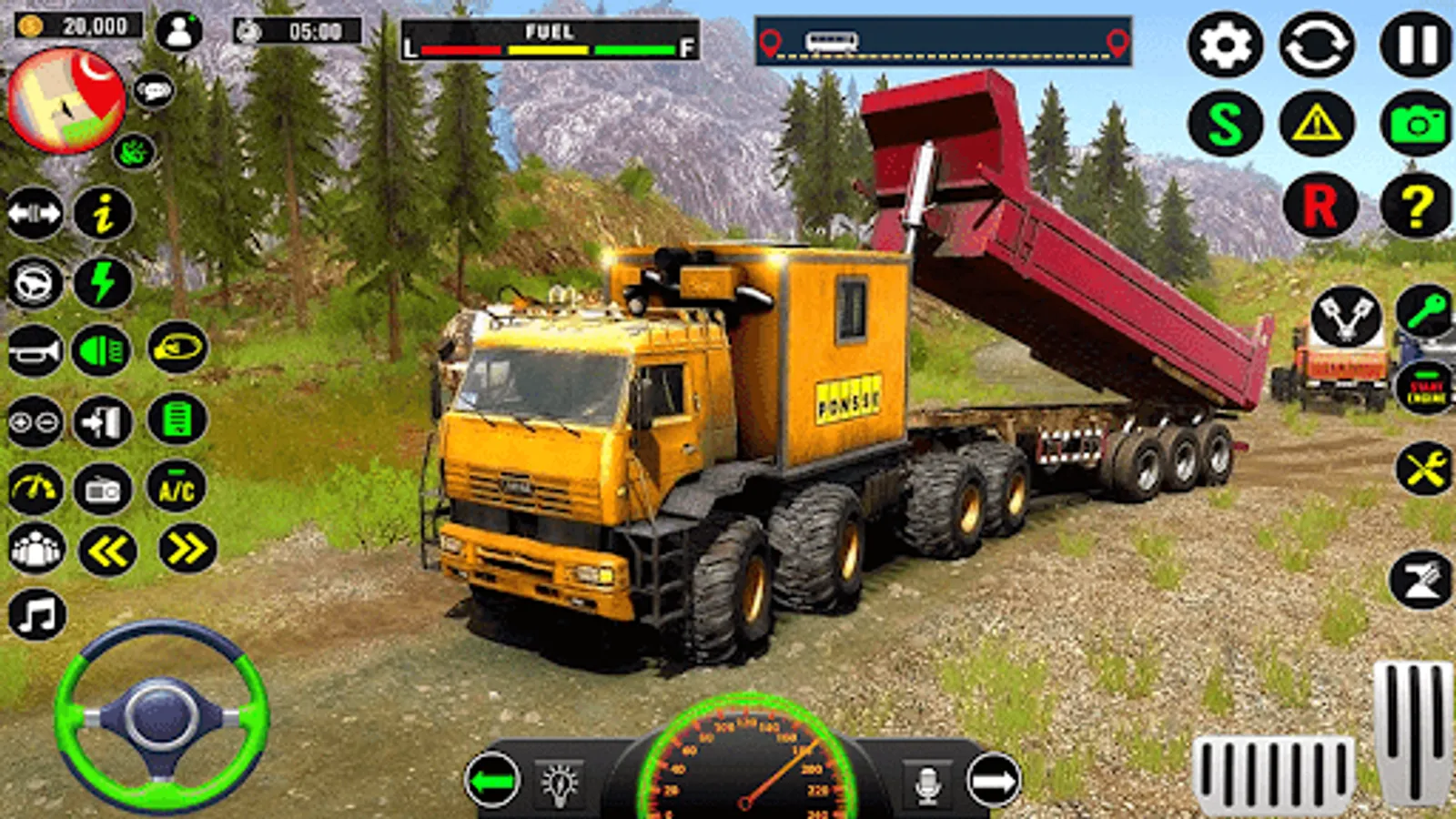 You can drive not only on roads and highways, there is also dirt driving and offroad driving. Test your lorry!