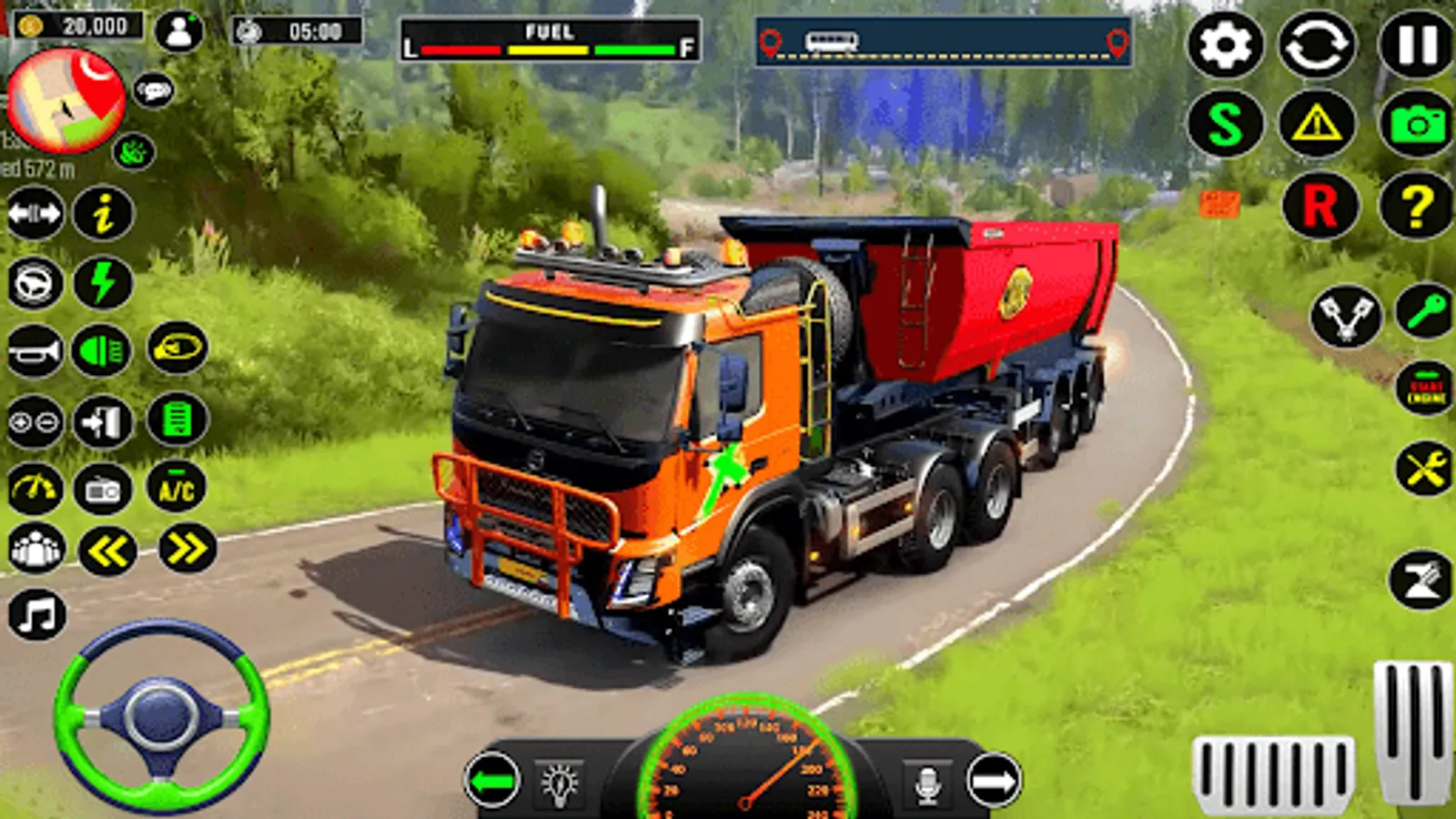 Drink hot coffee in the cab of your lorry and take the wheel! Now you are ready to deliver cargo! Doesn't matter rain or wind, the hurricane can't reach you here in the cab of your lorry. Enjoy driving and become the King of the Road in this new euro heavy double trailer transport driver 2020!