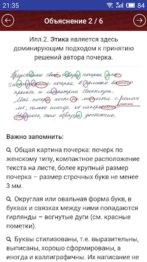 Through systematic and human-readable explanations and illustrations achieved recognition skill and interpretation of graphic handwriting features.