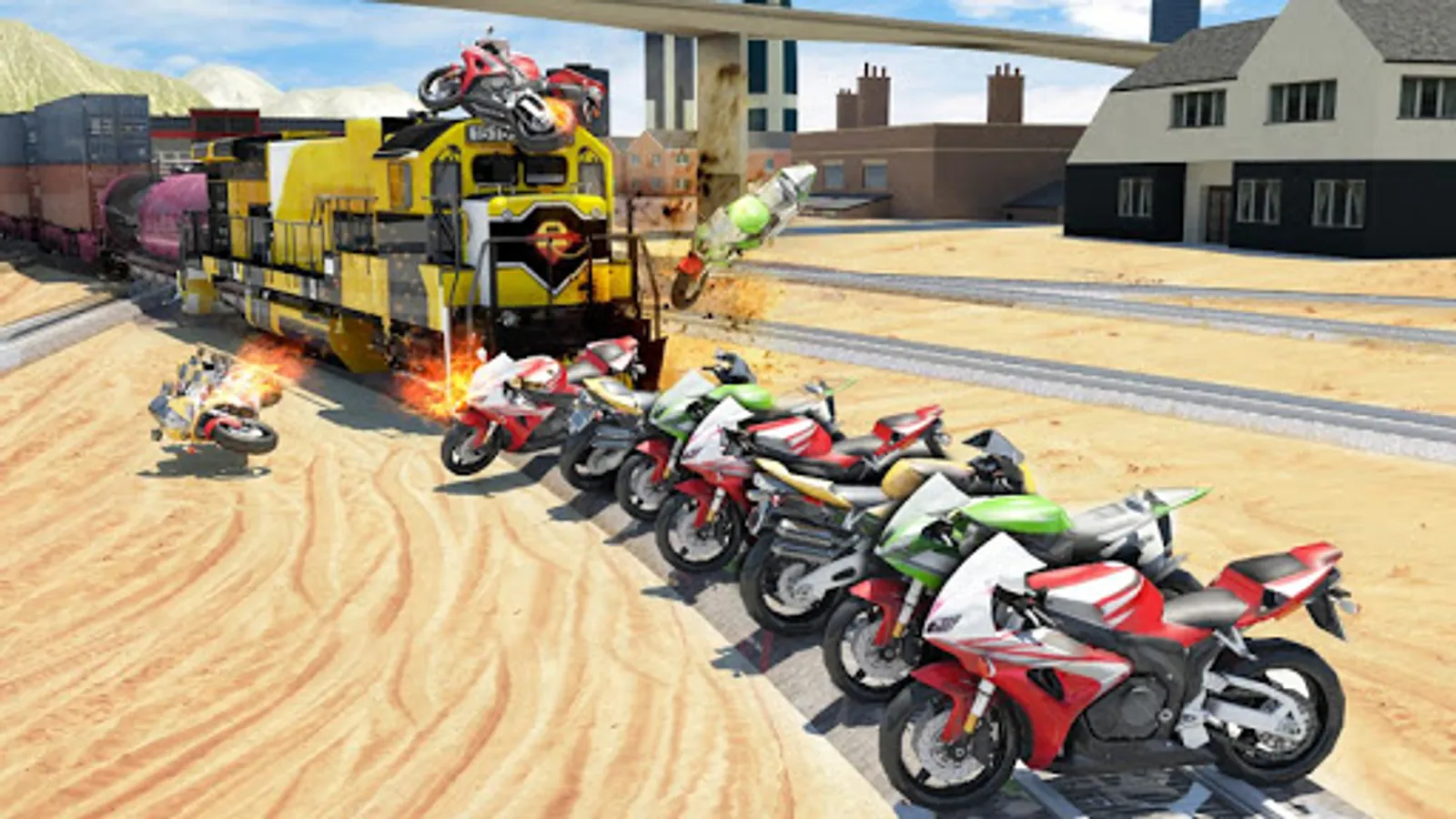 You must have seen many train driving games but this is one of the unique train games to have fun and enjoy the great explosions when train hits the obstacles on railway track. The best train simulator and stop train driving game in the market. It's perfect for adults and kids to have fun, who loves train and simulation games. Train start from the station and before it park at other station, park all huge vehicles on the track to feel the real explosions with HD graphics and realistic animation.