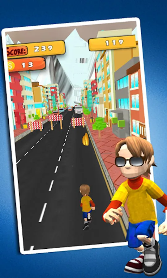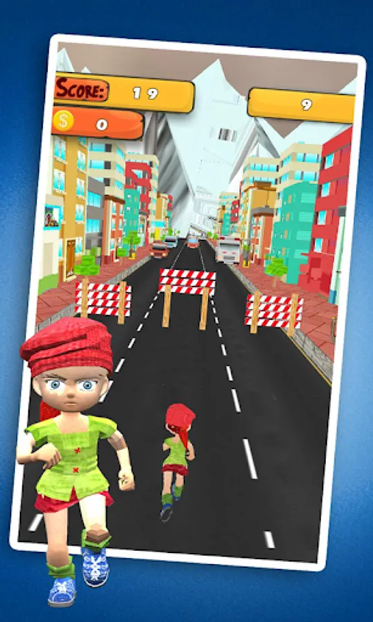 in this game very easy to control slide up to jump or slide and to move left or right. Avoid hitting trucks and buses. Run around different environment and gather all the coins you can.