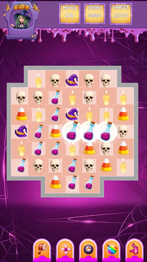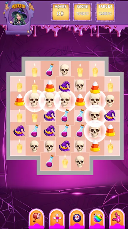 Swap and match 3 or more spooky items like pumpkins, candies, and potions.
