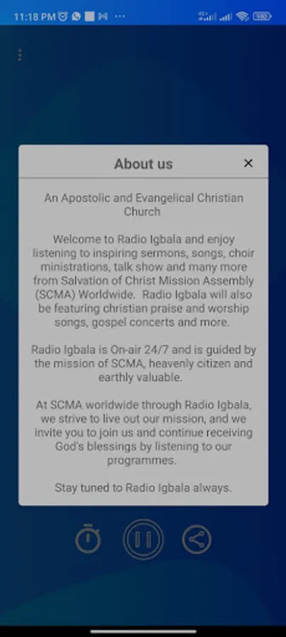 Welcome to Radio Igbala and enjoy listening to inspiring sermons, songs, choir ministrations, talk show and many more from Salvation of Christ Mission Assembly (SCMA) Worldwide. Radio Igbala will also be featuring christian praise and worship songs, gospel concerts and more.
