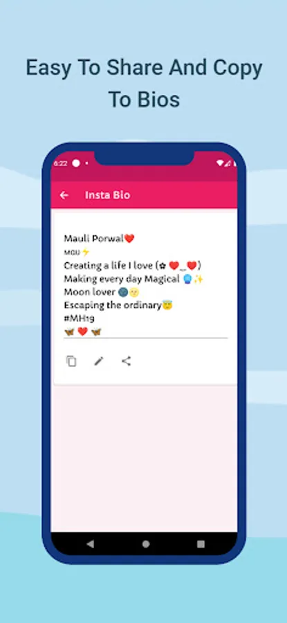 Here you will get a large collection of Bios Quotes like – Cool bios ideas Unique captions Hashtags ideas for status True thoughts captions collection Romantic status Cool quotes ideas for Hindi or English captions. App contains too many functionalities like Copy Bios, Edit & Save Bios in your list, get Bios with Multiple Languages, Filter by Gender, Preview Your Profile with selected Bios,Search Bios, Popular & Latest Bios, Add to Favorite Bios, Share in Social Media, etc..