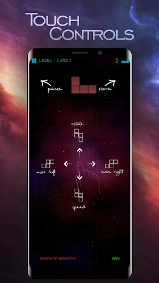 The legend game has returned with improved galaxy style. It's causes high fun and competition! Your task is to create horizontal lines with the given blocks. When you make a full horizontal block, it is disappeared from the screen and you earn some points. If there is no room for the given block in the screen, the game is over. You have to think twice before you put the blocks. Choose the best position for each block depending on their shapes. It is really a casual puzzle game for your free time. You can't stop playing it once you start the game! From now on, let’s enjoy a simple and addictive block puzzle game!