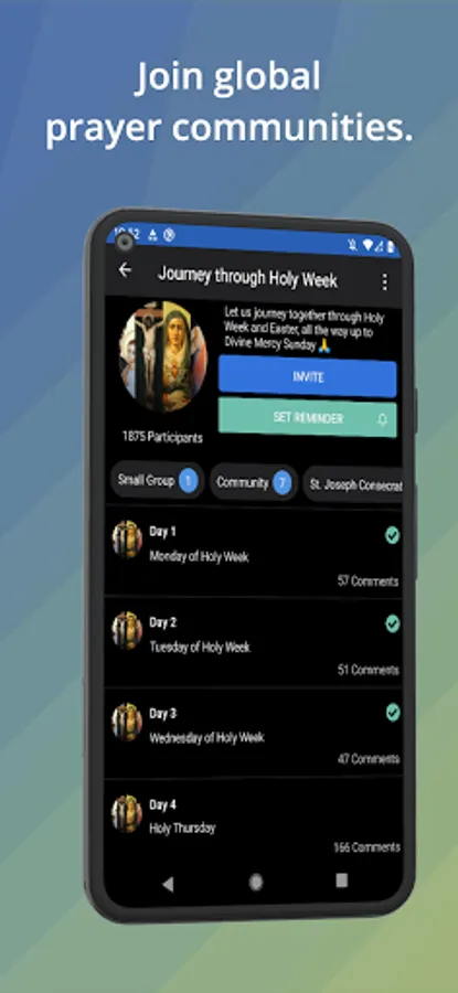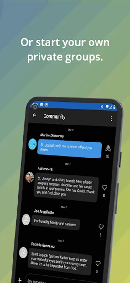 • Join and interact with others in praying a multitude of different prayers together, like novenas and consecrations