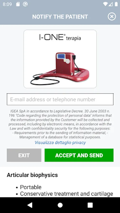 This app let you request information about therapies of IGEA. This app allow you to receive an e-mail about the therapy that most interest you. The doctor who likes to register will be notified about his/her own area of expertise.