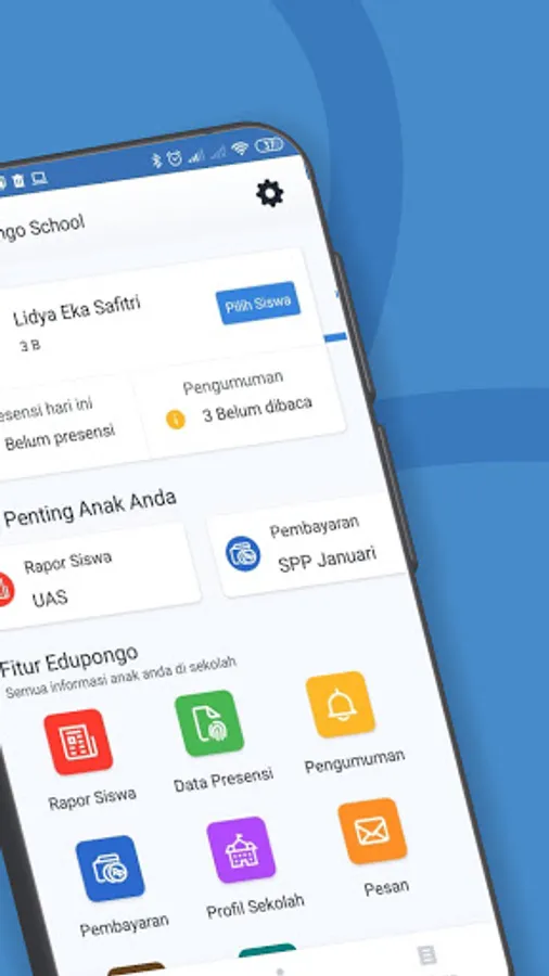 Parenting with mobile application platform that draws Party School with parents about information about his activities in the school. Parents can monitor directly the presence of children, the process of payment of school fees and various announcements from the school and easily provide feedback / input to the school.