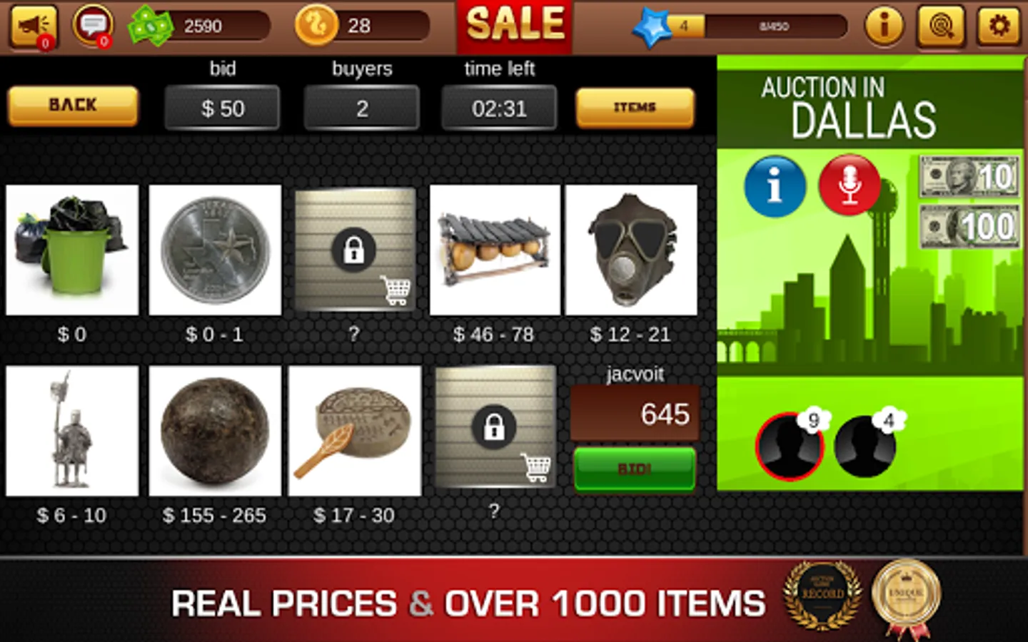 Bid Wars and Pawn Shop Stars was the first auction wars game with multiplayer! There are locations and garages dedicated to multiplayer auctions only. Try to beat real players from around the world: Europeans, Australians, and American pickers and bidders, too. Share your thoughts on CHAT.